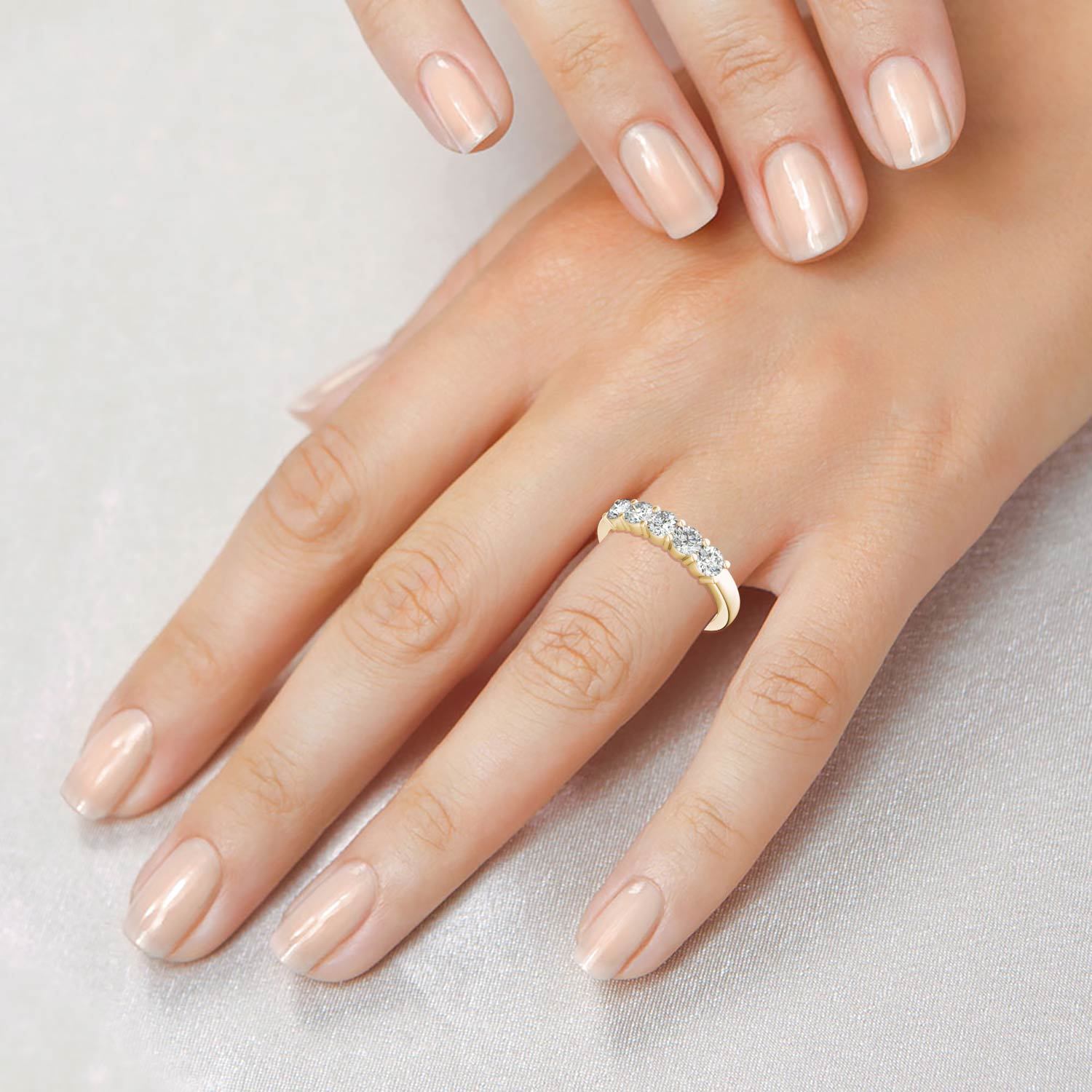 SR148 3.4mm 14ky 5-Stone Ring , With 0.80ct Diamond – D=5 , 6.00rs Ring Size